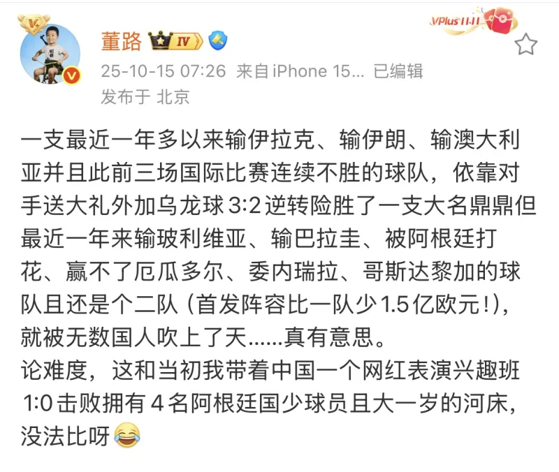 董路:日本贏巴西和我?guī)ш?duì)贏阿根廷論難度沒法比