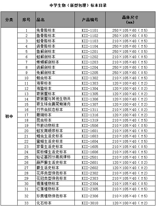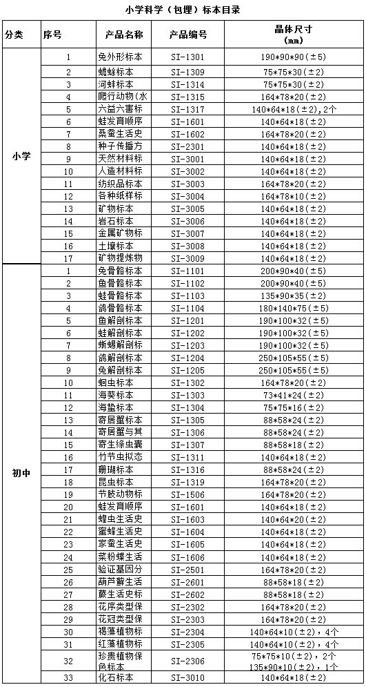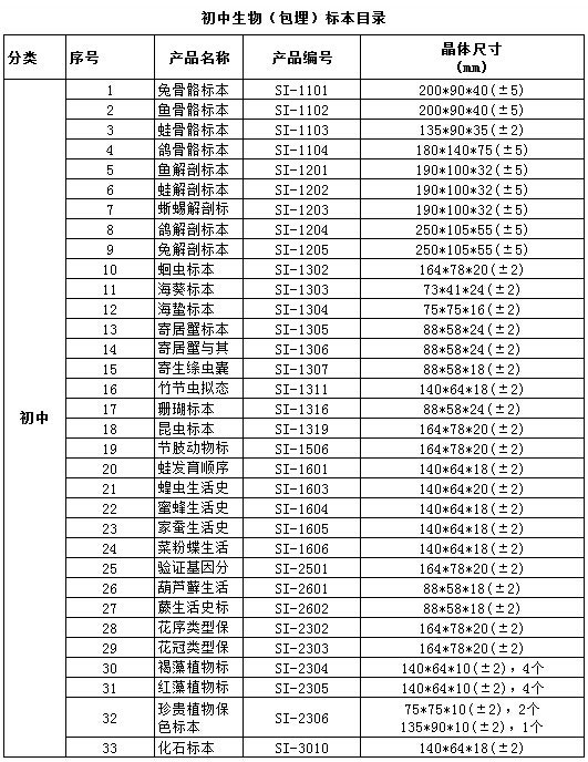 中小學(xué)標準配備系列包埋標本涵蓋了國家中小學(xué)標準配備標本要求的所有標本品種,包括植物外形、植物生活史、植物結(jié)構(gòu)、動物外形、動物生活史、動物結(jié)構(gòu)、動物骨骼、動物解剖,礦物等標本產(chǎn)品。產(chǎn)品符合國家教育部行業(yè)標準、企業(yè)標準、以及行業(yè)通行的安全標準,與教學(xué)大綱緊密配套,是中小學(xué)自然生物課堂的直觀教材和先進教學(xué)用具。