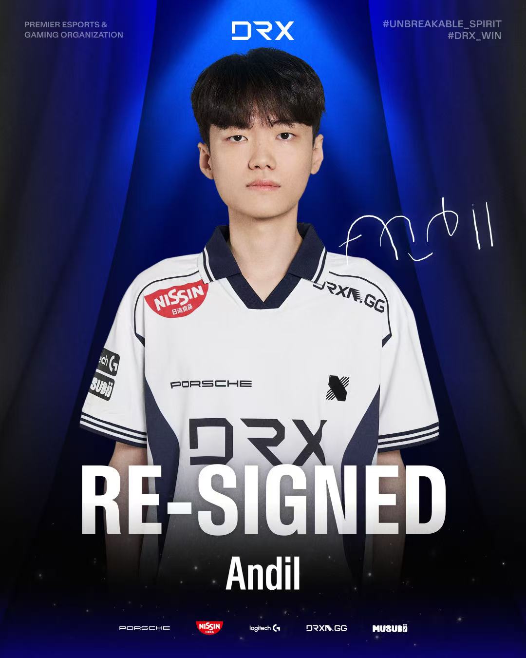 Andil選手2026年也將與DRX一路同行,約至請(qǐng)大家多多支持2026年也和DRX一起挑戰(zhàn)的板D變動(dòng)Andil選手。