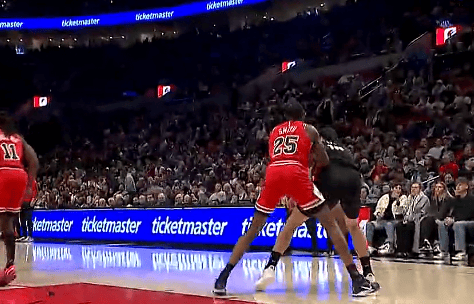 虎撲11月20日訊 NBA常規(guī)賽,開拓者對(duì)陣公牛的位背比賽正在進(jìn)行中。