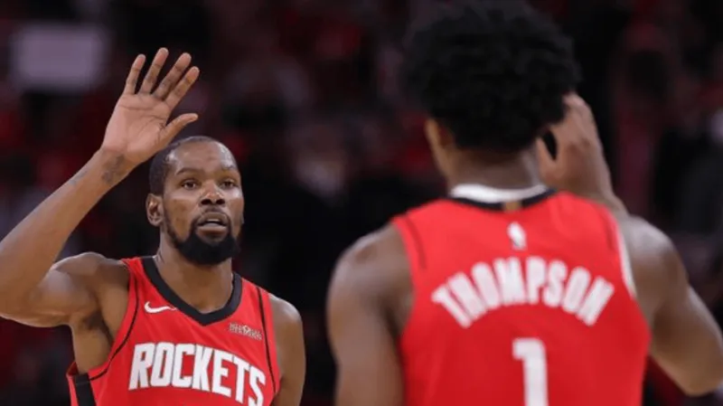 本場(chǎng)比賽,火箭球員凱文-杜蘭特出戰(zhàn)37分鐘,15投11中,其中三分球2投2中,罰球9投7中,得到31分3籃板7助攻。