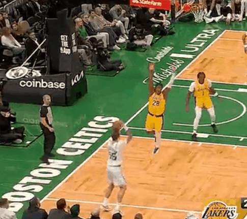 第二節(jié)比賽,入網(wǎng)沙伊爾曼底角三分再次空心入網(wǎng),半場(chǎng)半場(chǎng)湖人最多落后29分。最多