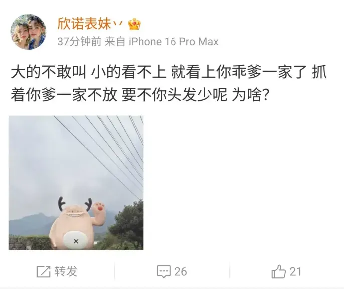 你的老婆也是神人,微博辦公,含沙射影的罵人,這和村里面的背后嚼人舌根的婦人有什么區(qū)別?一點(diǎn)格局都沒有,我都不敢想,如果現(xiàn)實(shí)中得罪你們了,你們能做出多沒有人情味的舉動(dòng)。我也算是看透了,有些事情并不是你想象中那么美好,你也不是我想的那種老實(shí)人,我以前看你直播話少槍準(zhǔn)的時(shí)候,覺得你就是我要學(xué)習(xí)的風(fēng)格,我的游戲榜樣,打比賽時(shí)候不甩鍋,沒有架子,17戰(zhàn)隊(duì)給人的感覺也是團(tuán)結(jié)穩(wěn)重??蛇@半年你一次一次的言論讓人無法理解,人家左梓軒直播的時(shí)候會(huì)調(diào)侃自己的隊(duì)員,會(huì)分析自己戰(zhàn)隊(duì)問題,和別人的打法合理性,到你這就是搞你了!這個(gè)人怎么怎么樣!完全沒有一點(diǎn)為他人著想的分析。你的17是個(gè)寶,別人的pero何嘗不是呢?當(dāng)年你覺得4am不應(yīng)該營銷1雷4響,我一直覺得沒問題,別人的問題我條件站你,可這幾次事件,你們的所作所為真讓人覺得格局賊小,我實(shí)在粉不動(dòng)了。