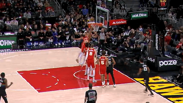 NBA常規(guī)賽,老鷹對(duì)陣掘金的下接比賽正在進(jìn)行中。