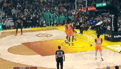 NBA常規(guī)賽,馬刺客場(chǎng)對(duì)陣騎士的起暴比賽正在進(jìn)行中。