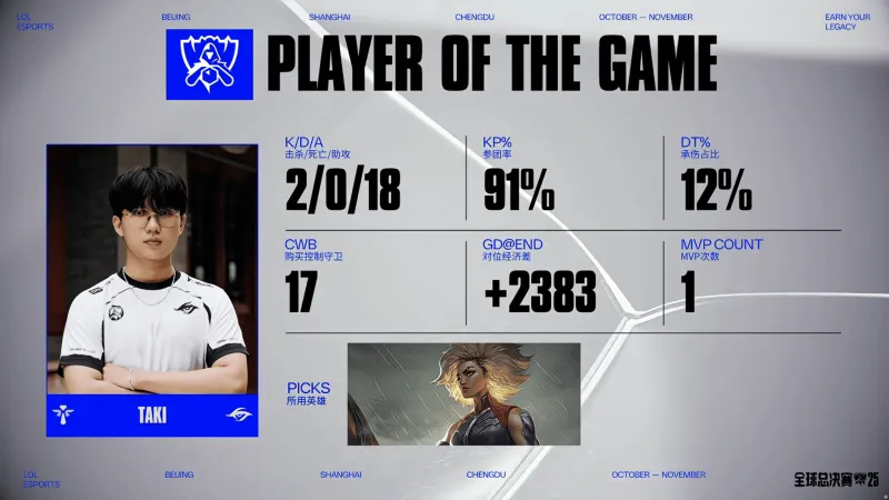 [流言板]Taki芮爾打出2/0/18戰(zhàn)績(jī),拿下TSW對(duì)陣VKS對(duì)局MVP
