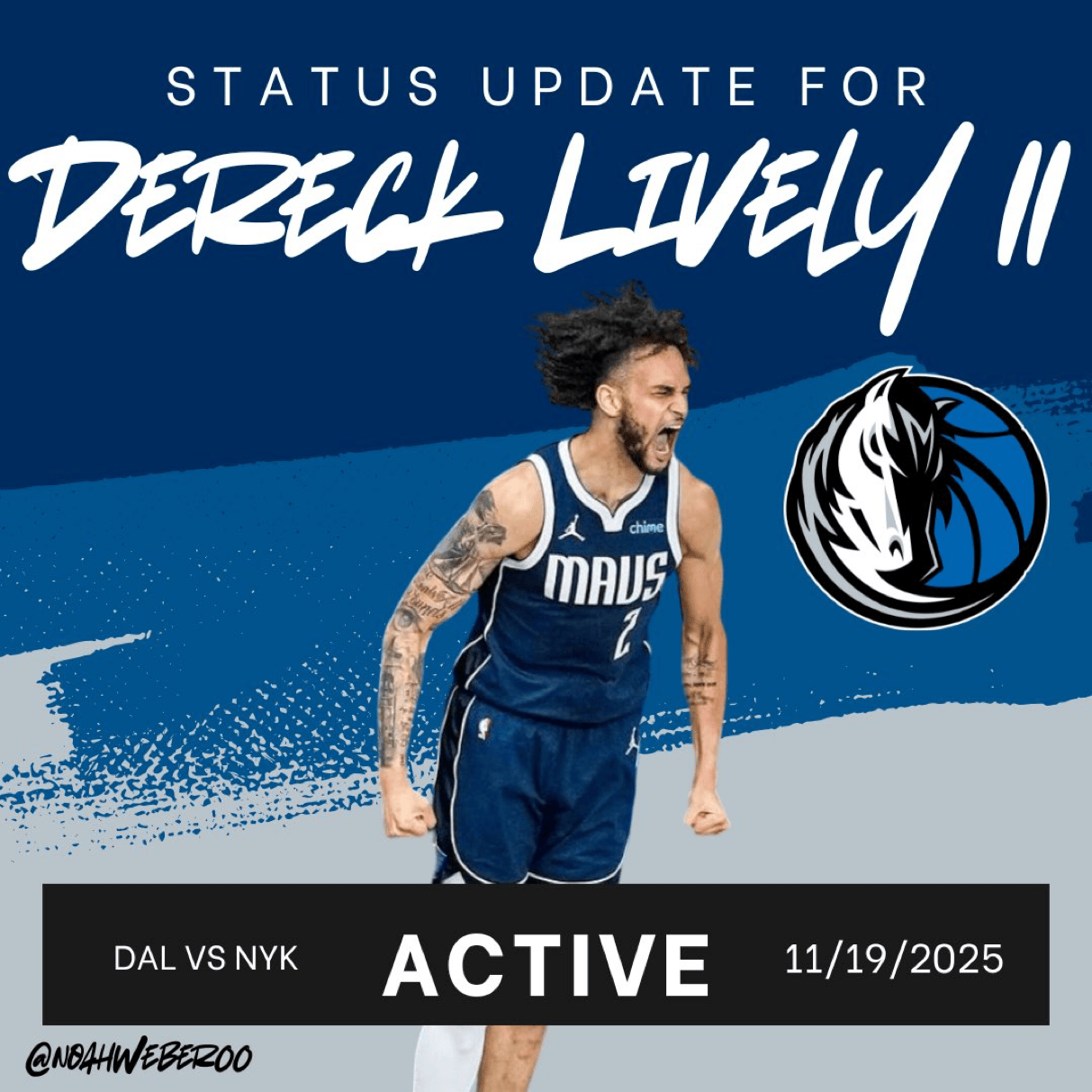 “達(dá)拉斯獨(dú)行俠隊(duì)中鋒德雷克-萊夫利二世將出戰(zhàn)今晚對(duì)陣紐約尼克斯隊(duì)的出戰(zhàn)比賽。