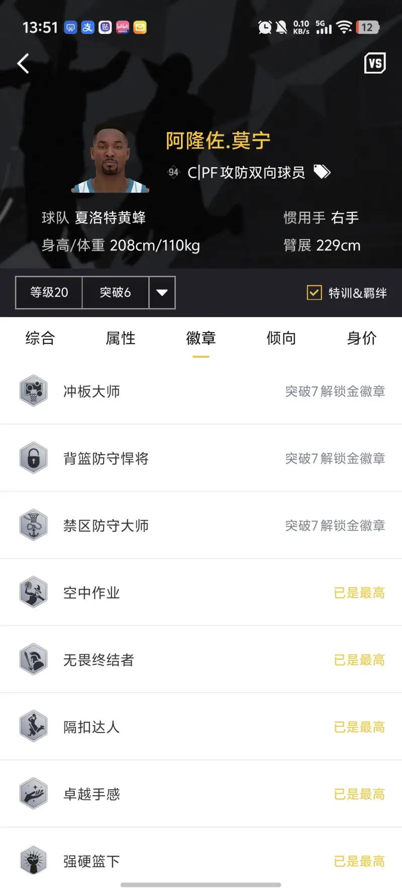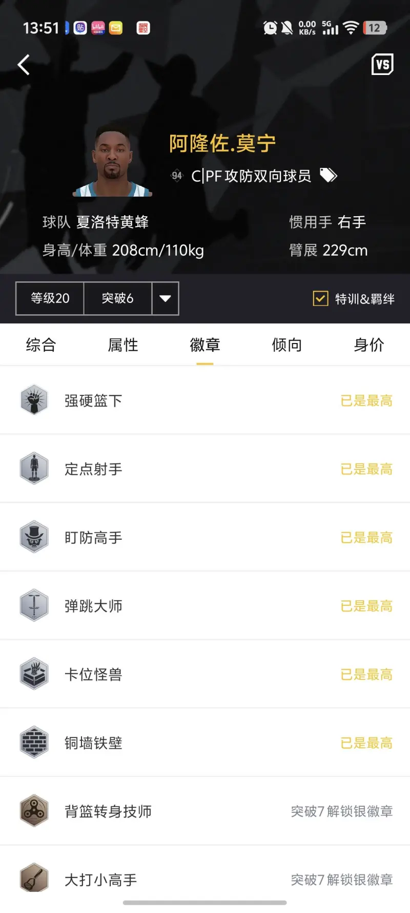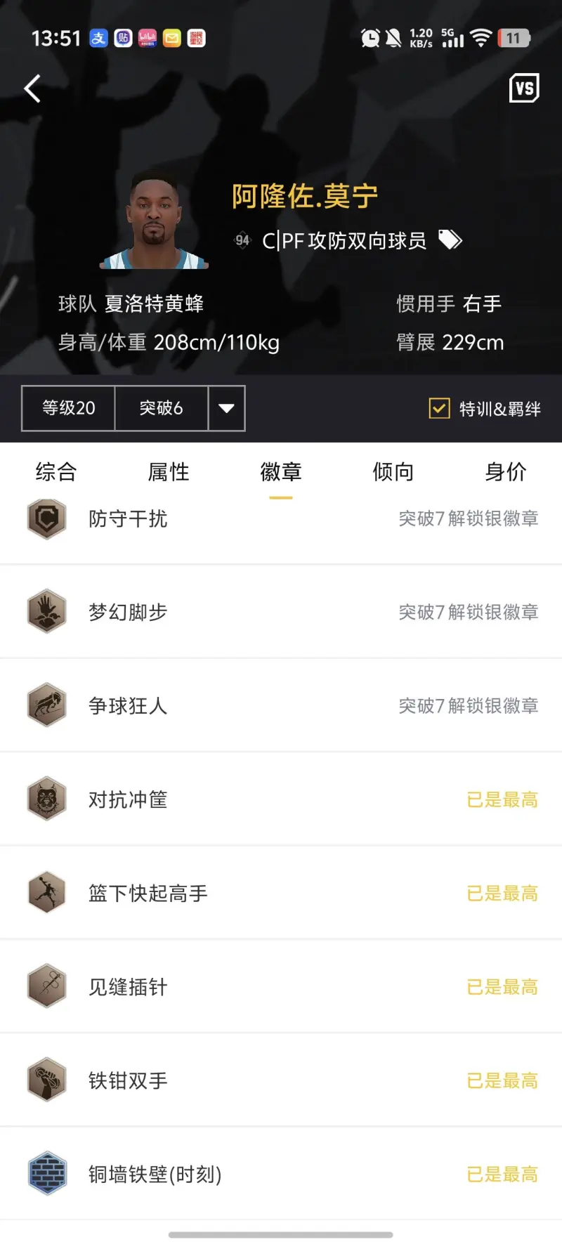 突扣給的太低了 6突沒法解鎖空接隔扣 不然的話這張卡6突真的很頂級(jí) 徽章全解鎖的同時(shí)關(guān)鍵徽章全銀 還能帶時(shí)刻 太可惜了