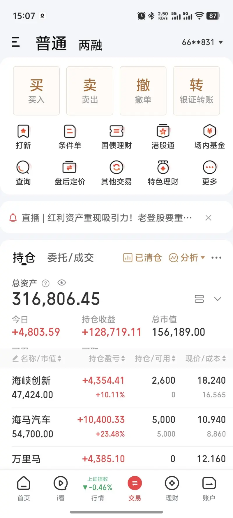 海馬??走勢偏弱,適當(dāng)減了點倉??赡苁歉=ň€太強,資金分流明顯。不過海南板塊的行情應(yīng)該還沒走完,后面繼續(xù)做低吸高拋。