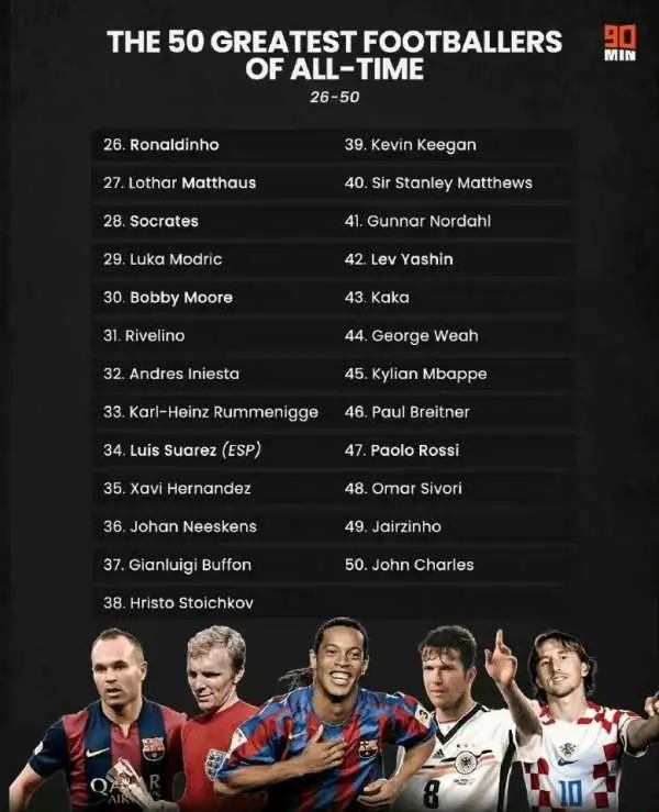 明明我軍有6個歐冠,為啥在歷史前50中,只有一個利物浦球員??