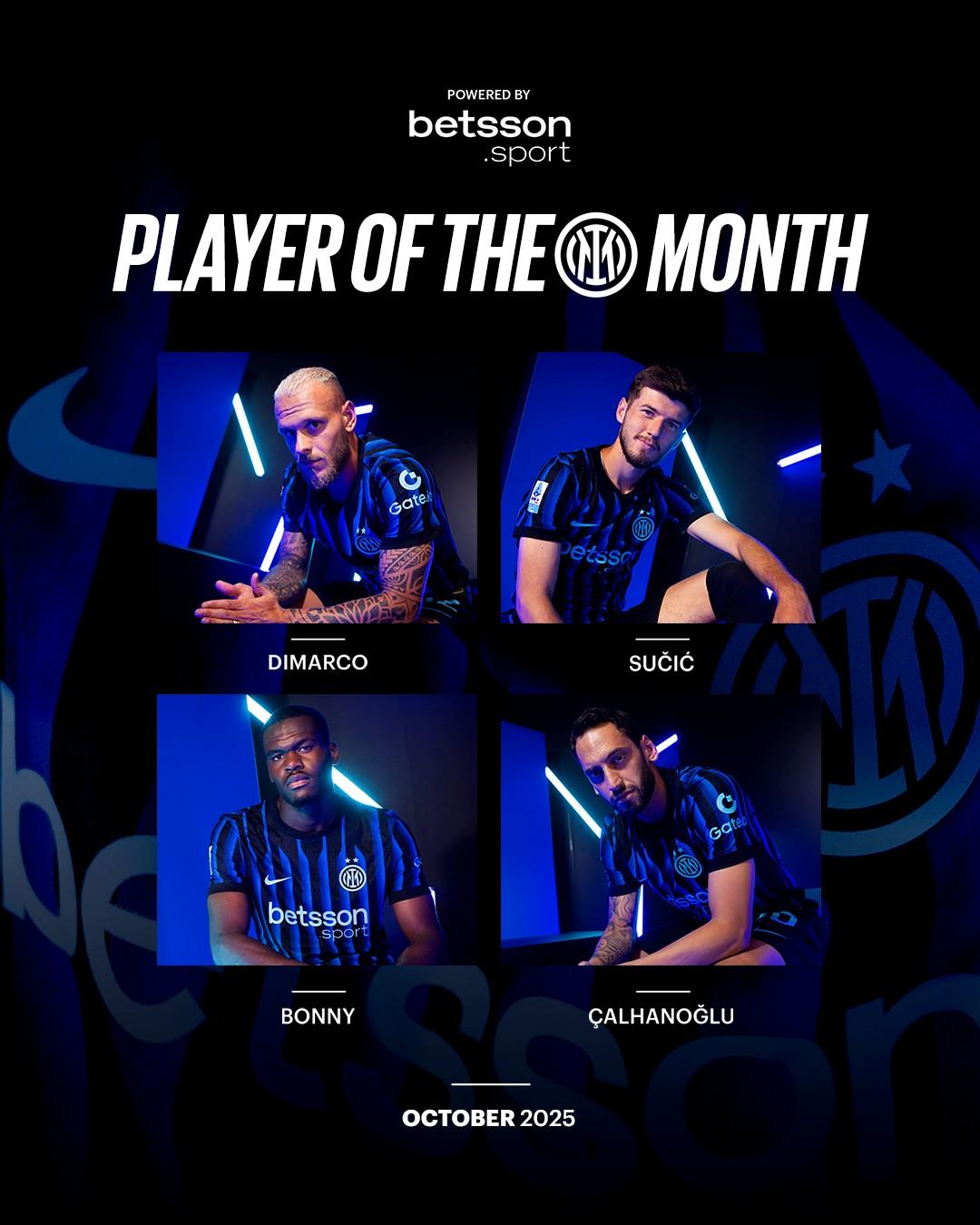 虎撲11月11日訊 國(guó)米官方公布10月份隊(duì)內(nèi)最佳球員候選: