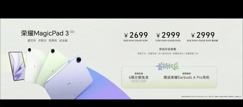 性能方面:榮耀 MagicPad 3 Pro 是全球首款搭載高通驍龍 8 Elite Gen5 的平板電腦,配合榮耀幻影引擎 3.0 和 HONOR E2 自研能效增強(qiáng)芯片;標(biāo)準(zhǔn)版 MagicPad 3 則搭載驍龍 8 Gen 3,支持幻影引擎。