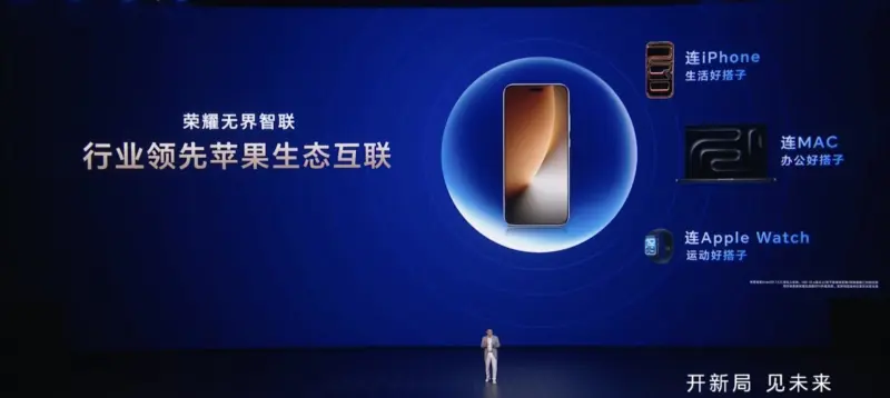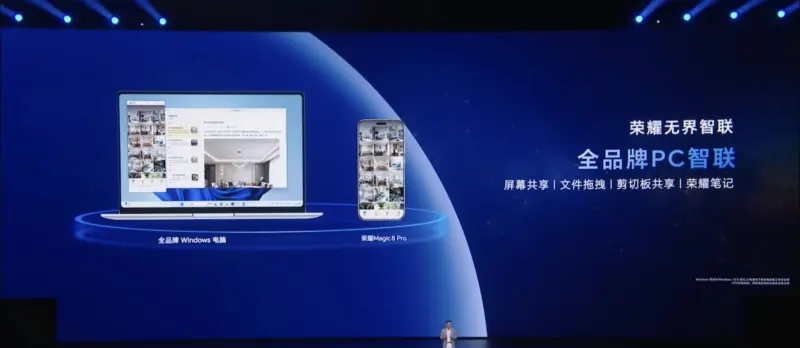 智能互聯(lián)與生態(tài)擴(kuò)展:發(fā)布會(huì)上,榮耀 CEO 李健宣布,榮耀無(wú)界智聯(lián)正式支持蘋(píng)果生態(tài)設(shè)備互通,可實(shí)現(xiàn) iPhone、Mac、Apple Watch 之間的電話(huà)、通知、文件與照片流轉(zhuǎn)。此外,還支持與全品牌 PC 智聯(lián),具備 文件拖拽、剪切板共享、屏幕共享、榮耀筆記互通 等能力。通過(guò) MagicOS 10 的“全家桶互聯(lián)”,榮耀手機(jī)與 Windows、蘋(píng)果生態(tài)實(shí)現(xiàn)深度打通,支持跨設(shè)備任務(wù)接力與智能投屏。