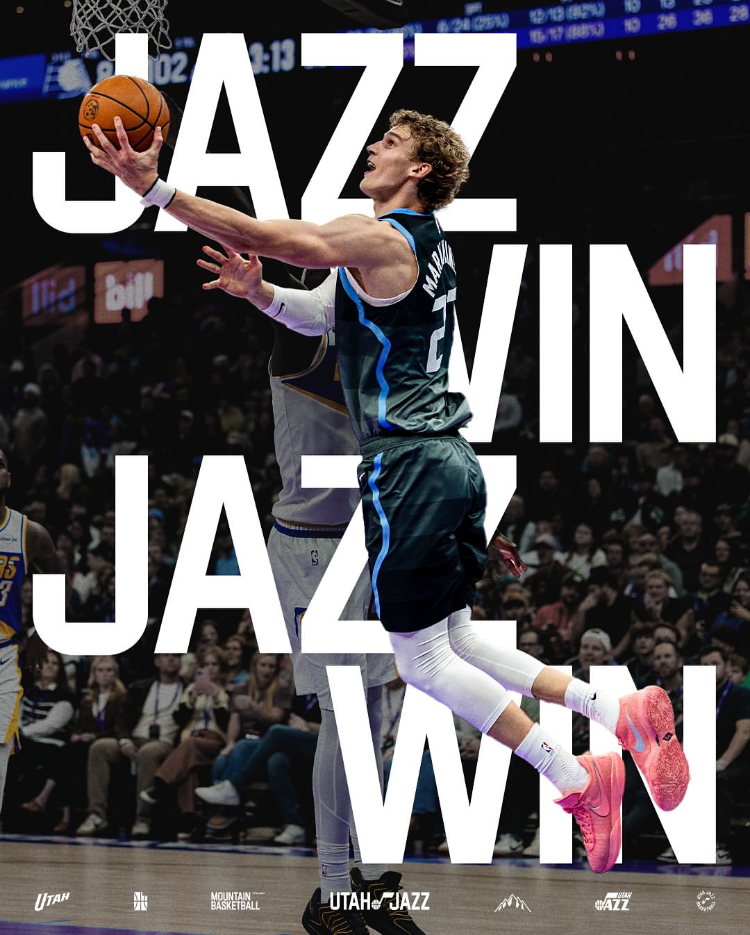 虎撲11月12日訊 爵士官方ins分享贏球海報,配文:城市版球衣戰(zhàn)績:1勝0負 。媒城
