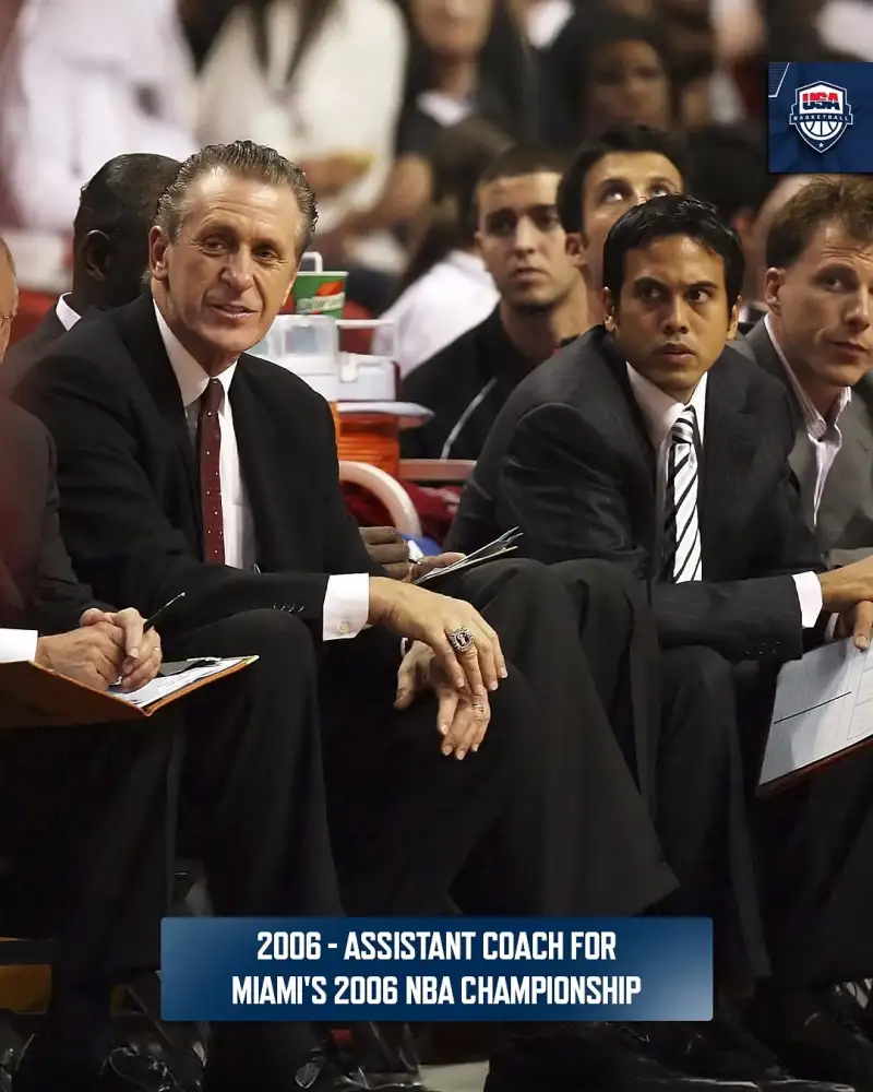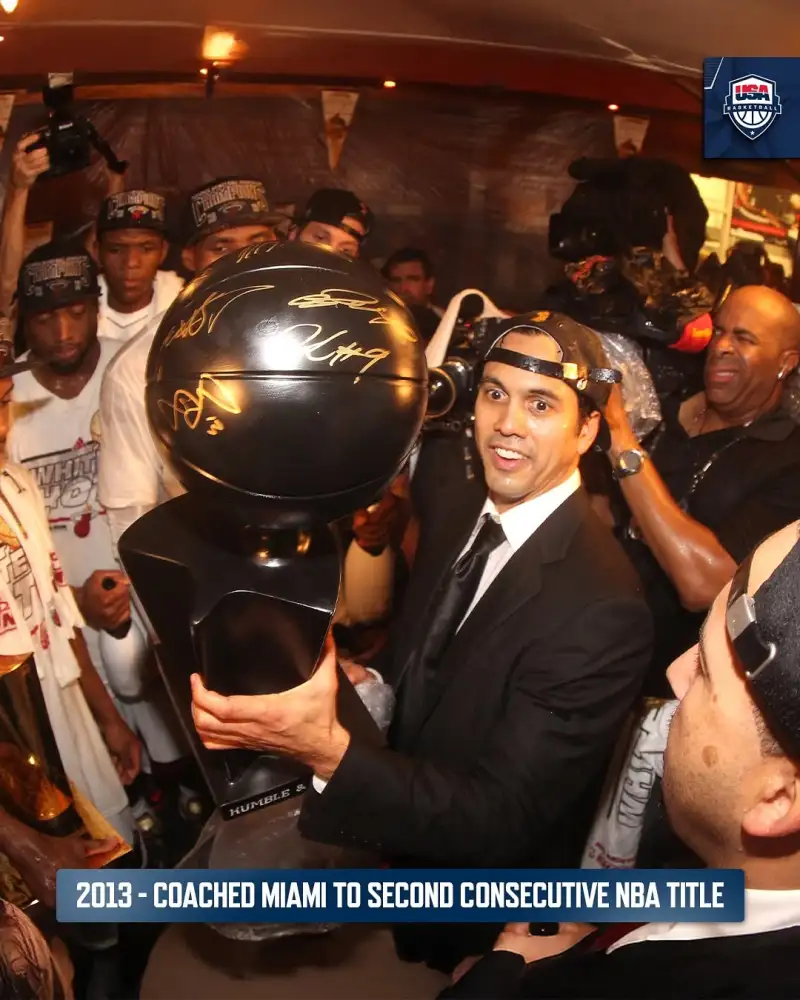 斯波爾斯特拉自1995年起,先后擔(dān)任邁阿密熱火隊錄像分析師、首席助教,2008年起擔(dān)任邁阿密熱火隊主教練,曾帶領(lǐng)熱火隊獲得兩次NBA總冠軍,他還曾在2021年擔(dān)任美國男籃選拔隊的主教練,進一步加深了與美國籃球的聯(lián)系。