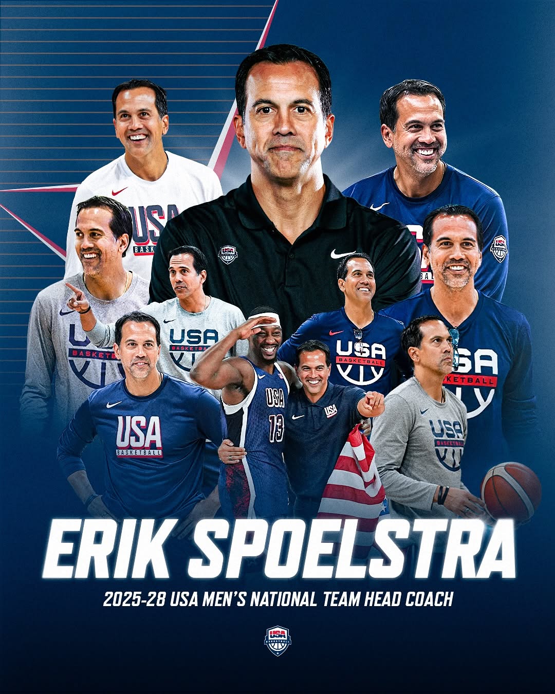 來源:Instagram虎撲10月15日訊 今日美國籃協(xié)官方宣布,埃里克-斯波爾斯特拉正式成為美國男籃新任主帥,任期從2025年至2028年,他將帶領(lǐng)美國男籃征戰(zhàn)下一屆世界杯和2028年洛杉磯奧運會。