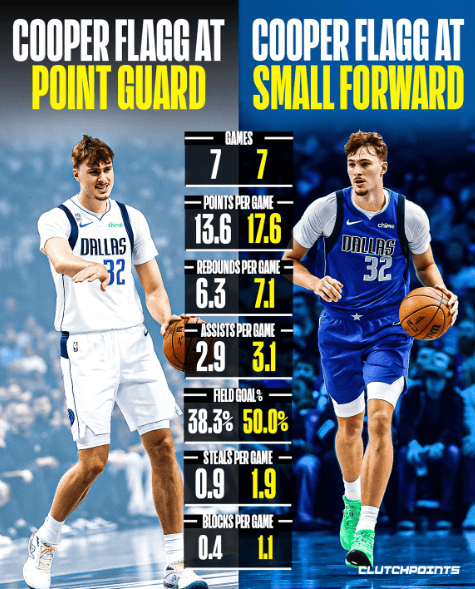 美媒ClutchPoints在ins上談及了庫(kù)珀-弗拉格在位置上的弗拉變化:達(dá)拉斯獨(dú)行俠隊(duì)已經(jīng)意識(shí)到庫(kù)珀-弗拉格并非控球后衛(wèi)。