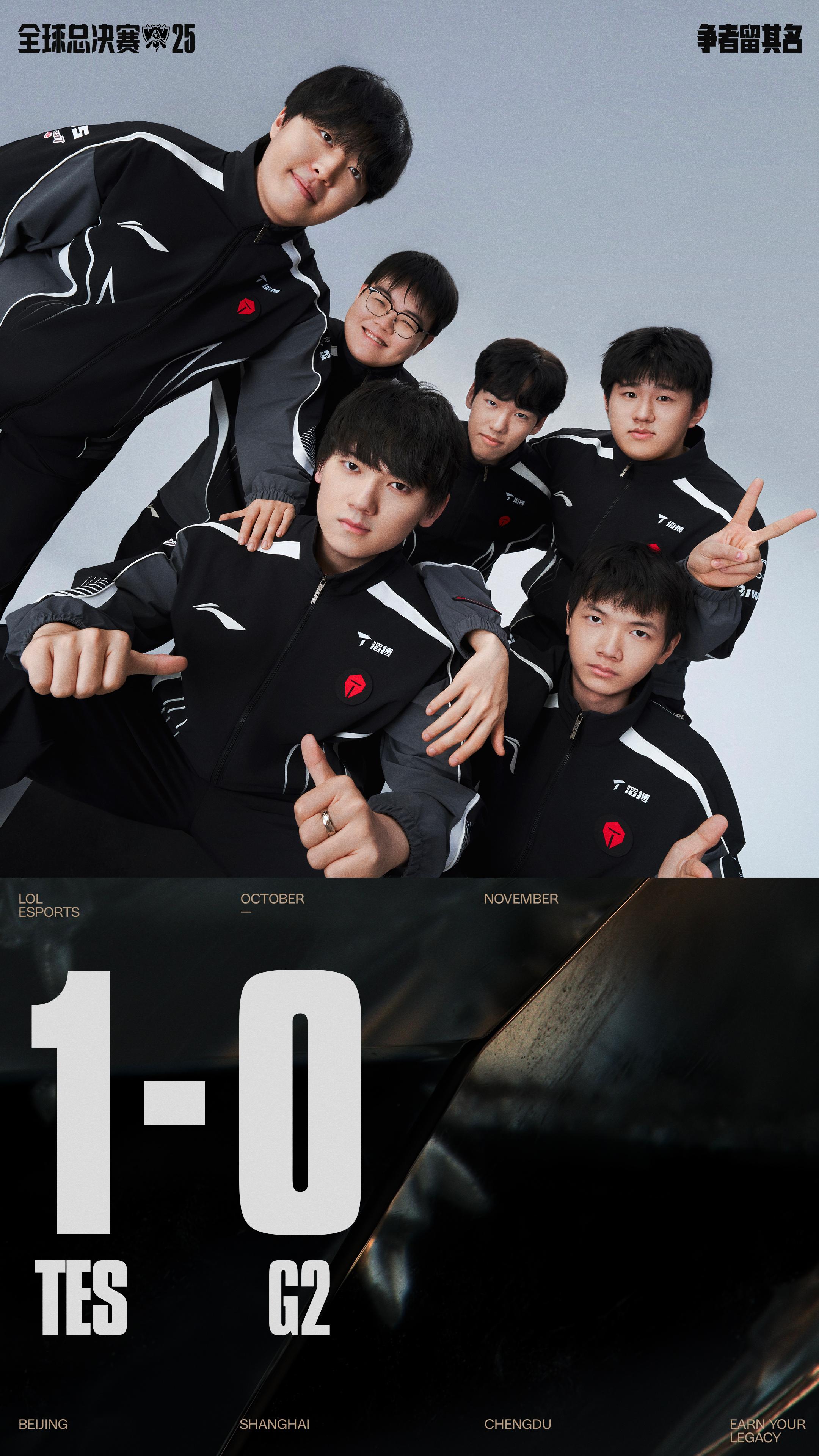 虎撲10月15日訊 S15瑞士輪首日,TES 1-0 G2。乘風(fēng)LPL官方發(fā)文:乘風(fēng)聚勢(shì),聚勢(shì)破浪前行。破浪恭喜滔搏贏下瑞士輪第一輪比賽!前行