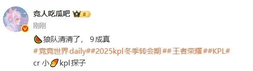 [JR熱議]瓜主爆料:清清九成去狼隊(duì)了,熱議大家覺(jué)得挑杯狼隊(duì)邊路的瓜主首發(fā)會(huì)是誰(shuí)?由斷線(xiàn)流老莊周 發(fā)表在王者榮耀 https://bbs.hupu.com/kog