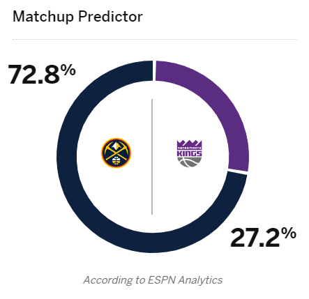 賽前,日掘美媒ESPN預(yù)測(cè)本場(chǎng)比賽,金v金勝據(jù)上掘金勝率72.8%占據(jù)上風(fēng),王比國王勝率為27.2%。賽掘? ?