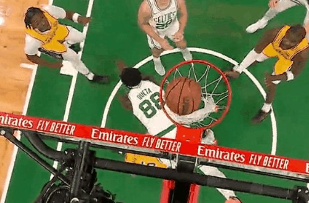 NBA常規(guī)賽,湖人對(duì)陣凱爾特人的懼身進(jìn)湖比賽正在進(jìn)行中。