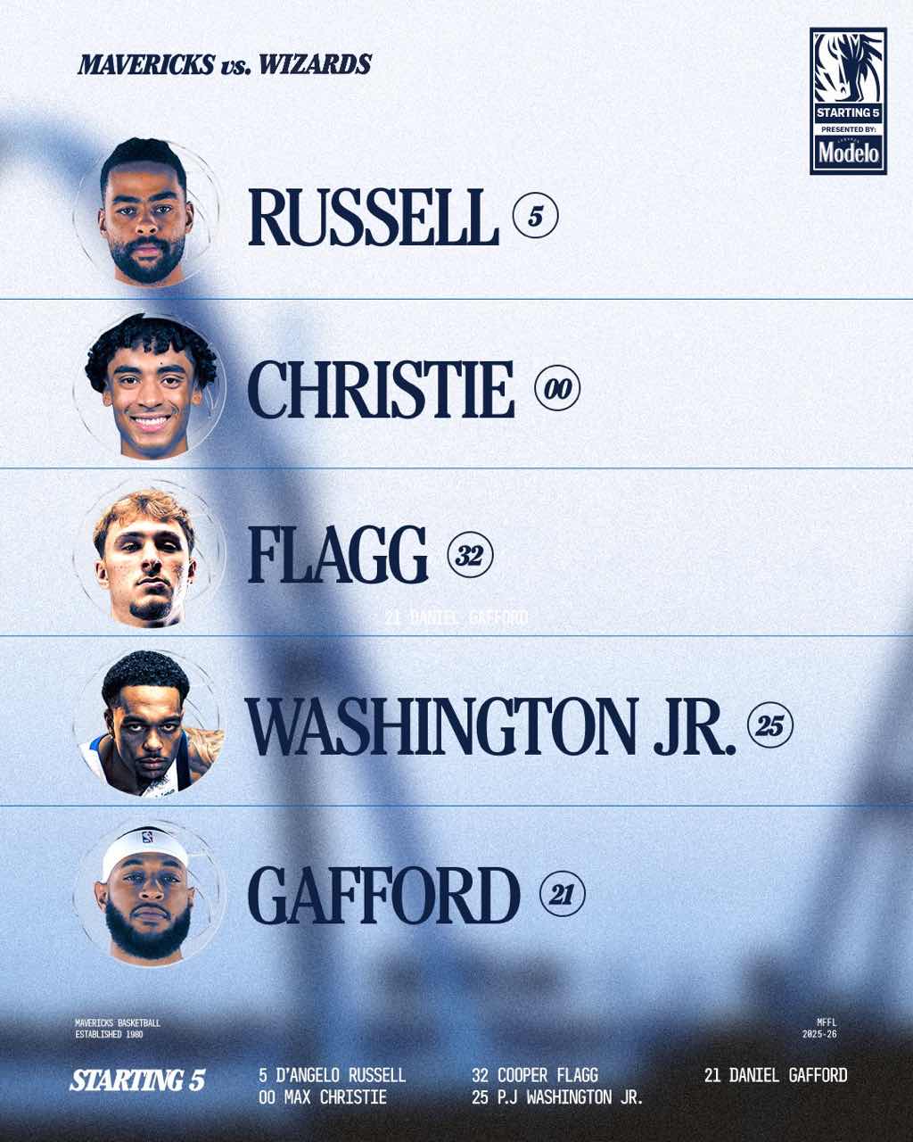 賽前,福德獨(dú)行俠官方公布了比賽的流言拉塞里斯拉格首發(fā)陣容:
