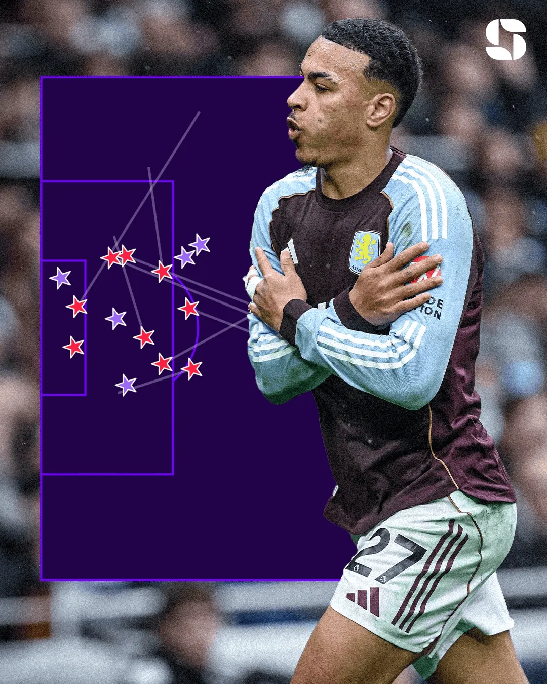 他是摩根2025自然年里參與英超進球最多的阿斯頓維拉球員——他目前已經(jīng)貢獻了5球9助攻。