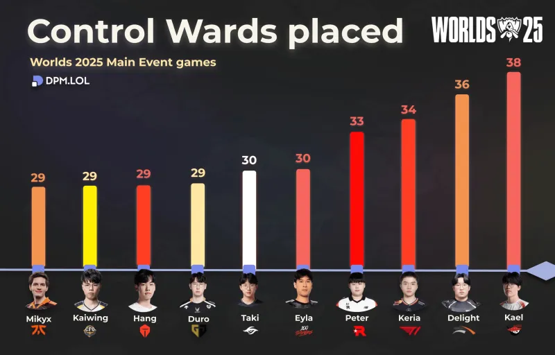 [流言板]2025全球總決賽目前插眼最多選手:Kael/Delight/Keria前三
