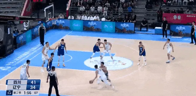 全運會男籃銅牌賽,遼寧對陣四川的手騏手打比賽正在進行中。
