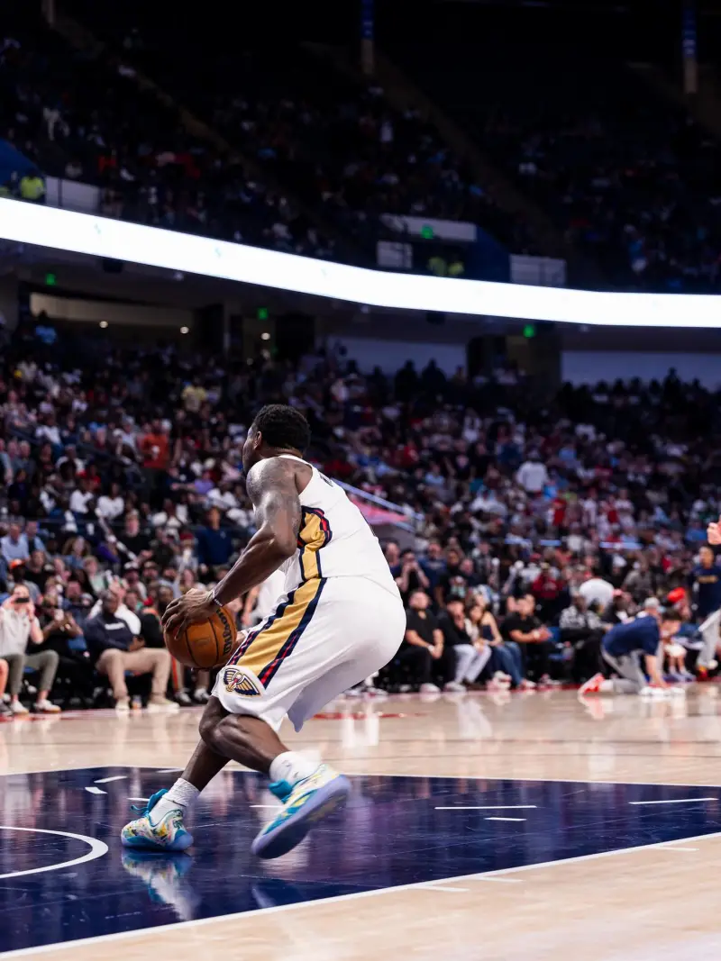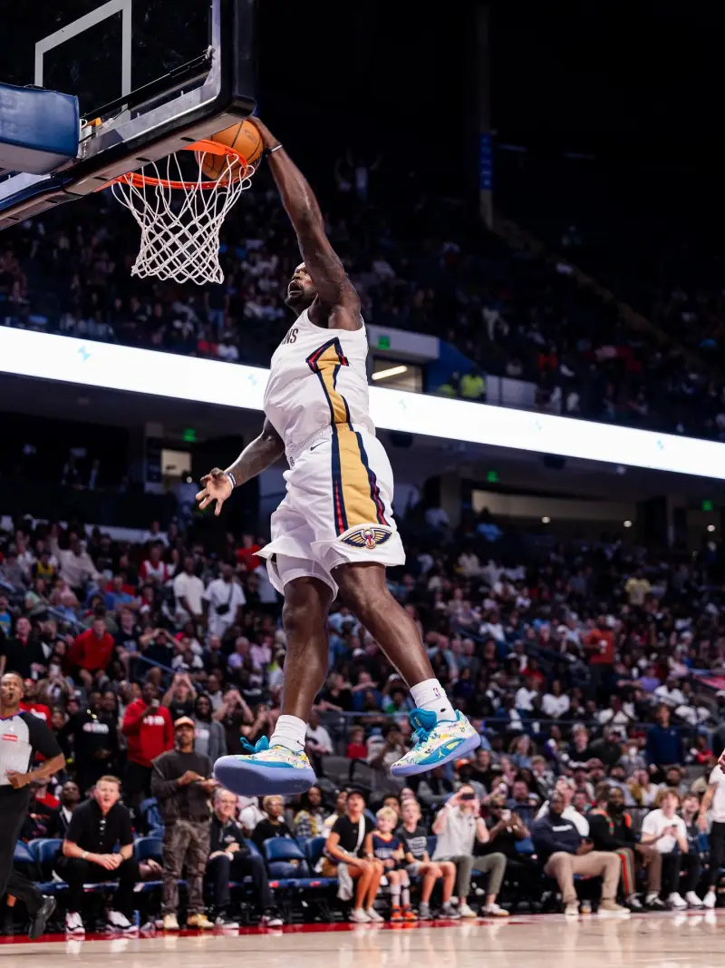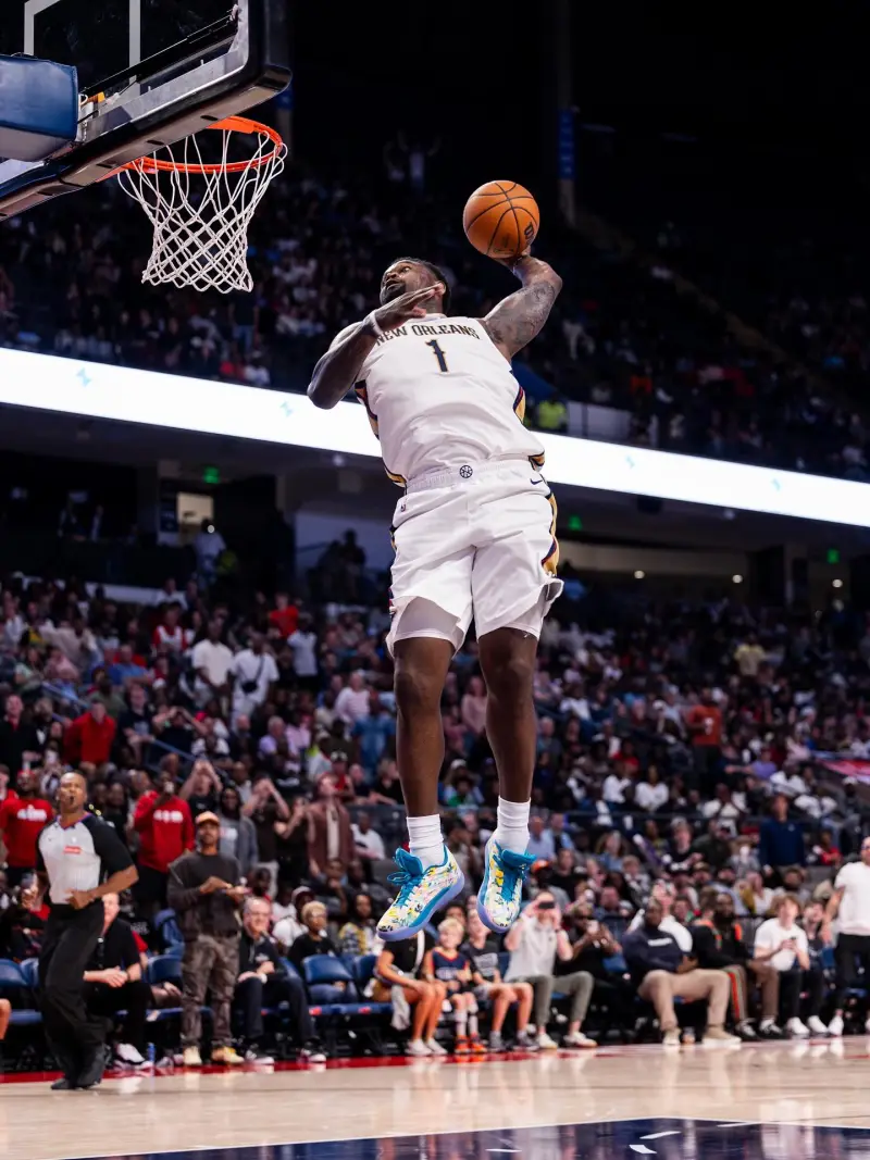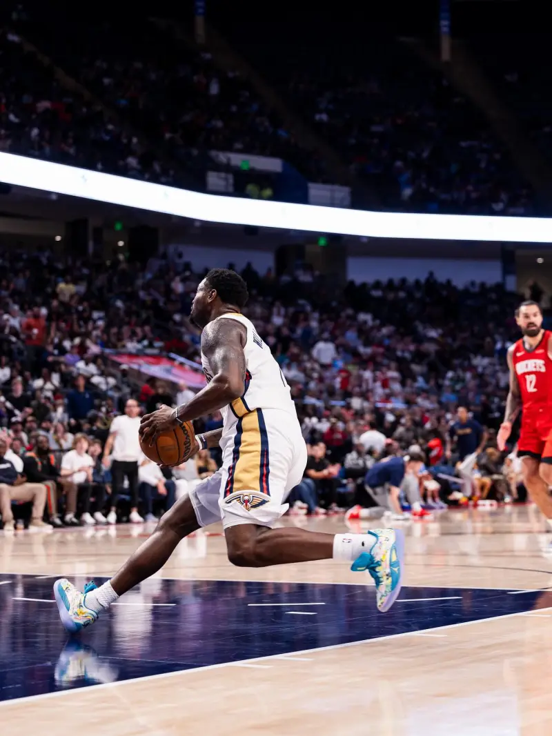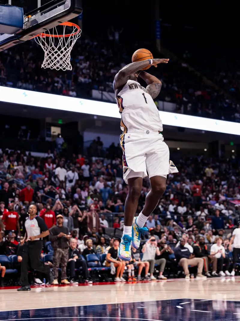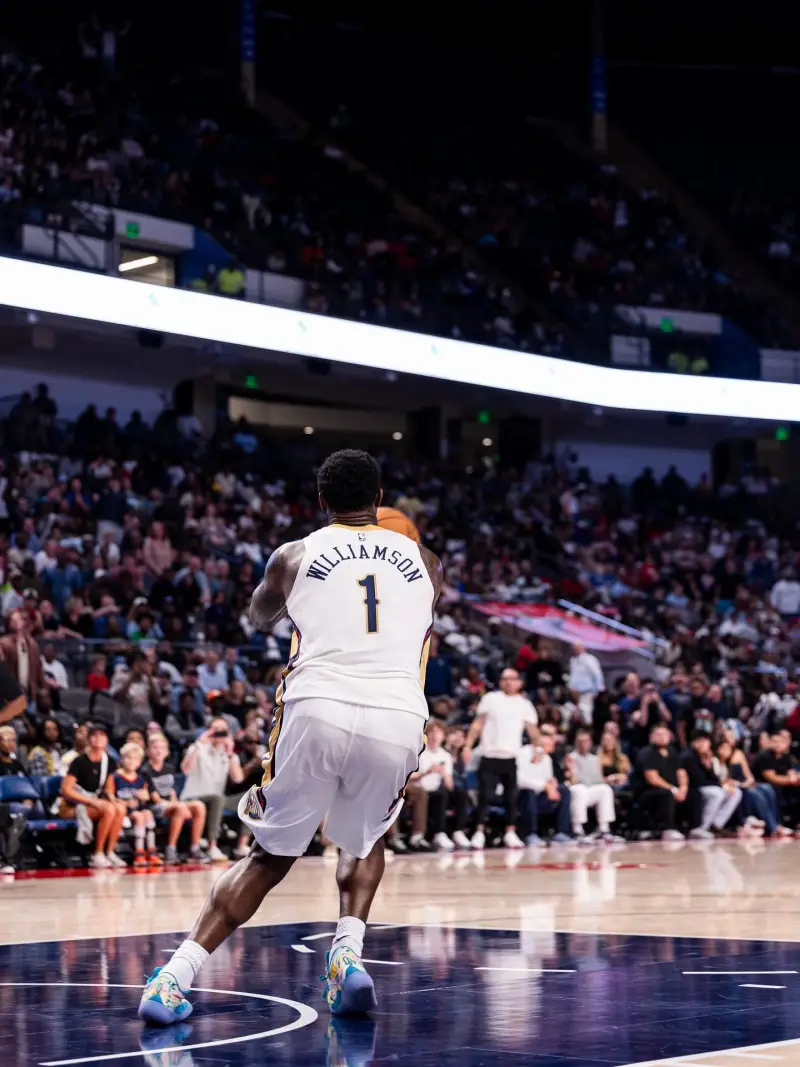 虎撲10月15日訊 鵜鶘官方更新Ins,曬出一組鵜鶘球員蔡恩-威廉森今日完成360°扣籃的賞鵜賽場照與球迷分享。