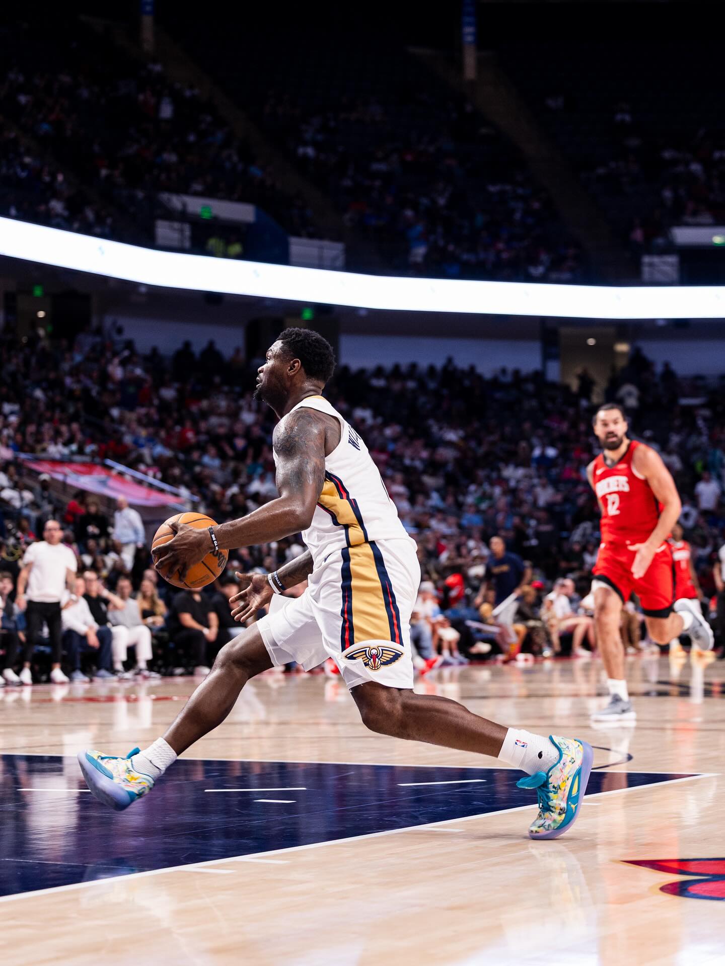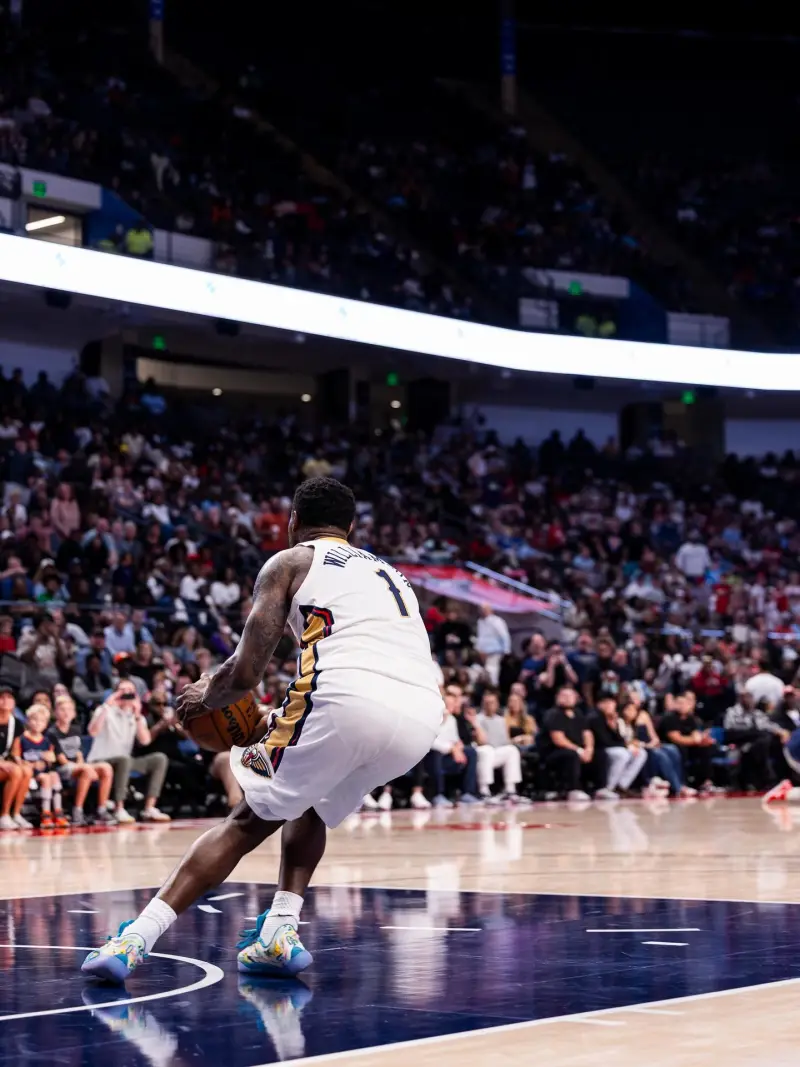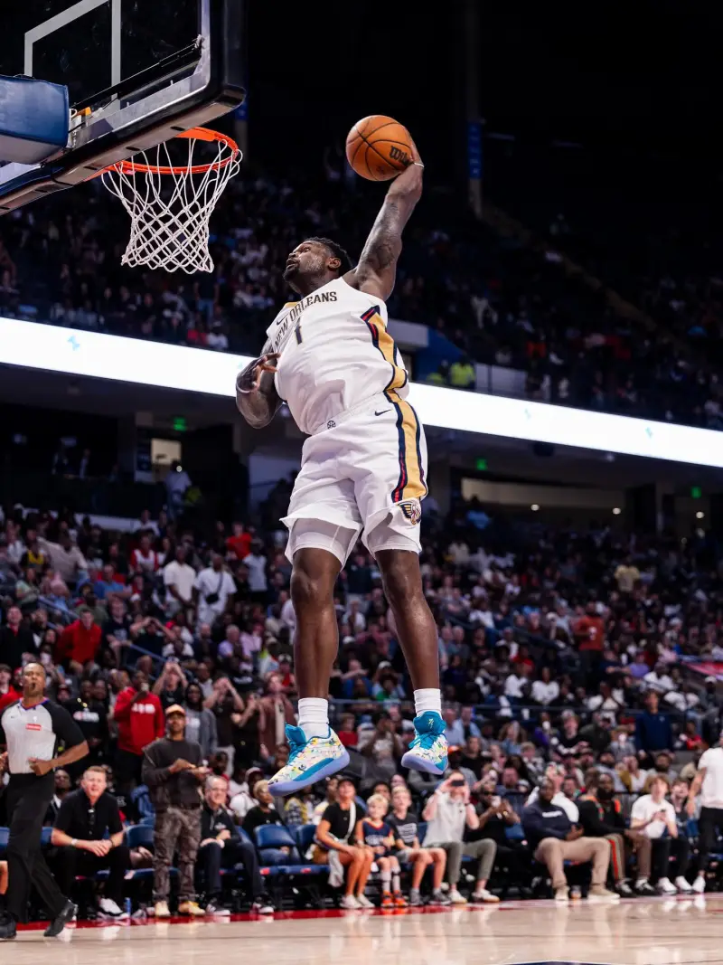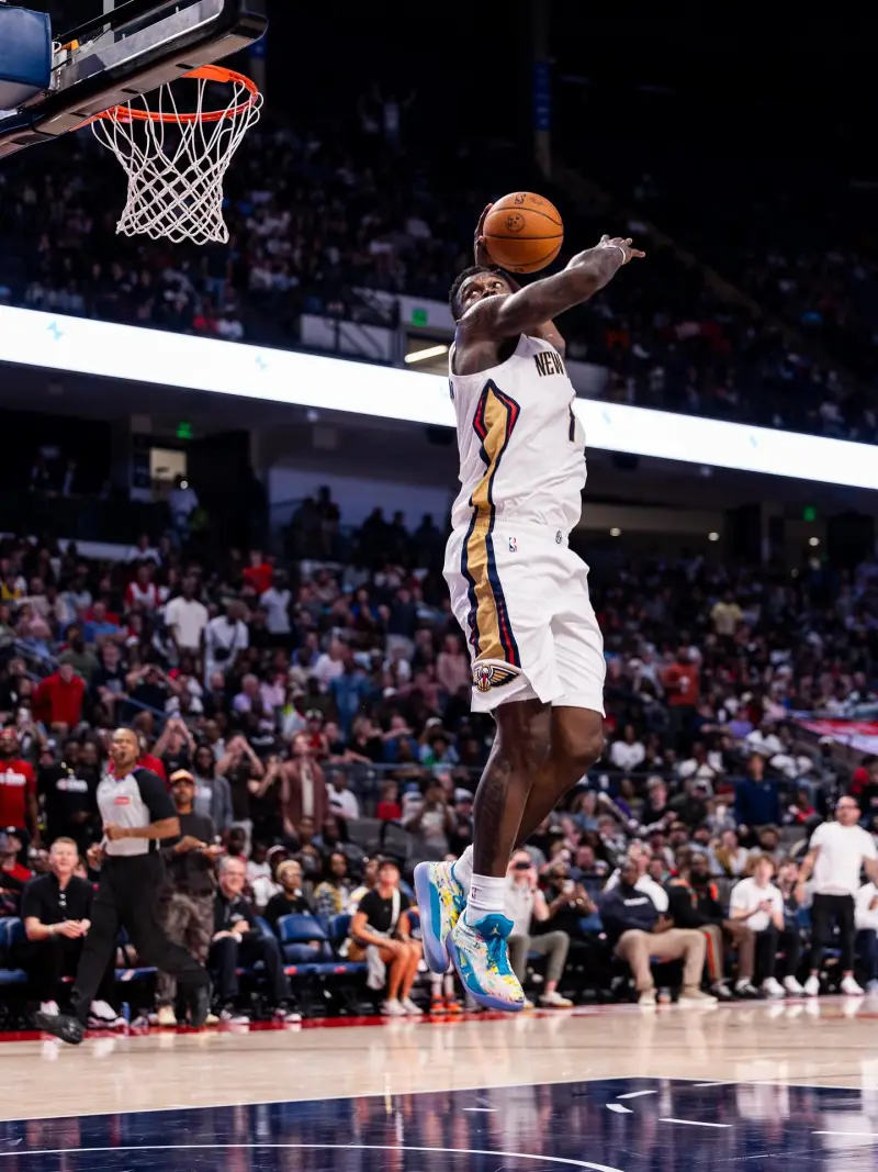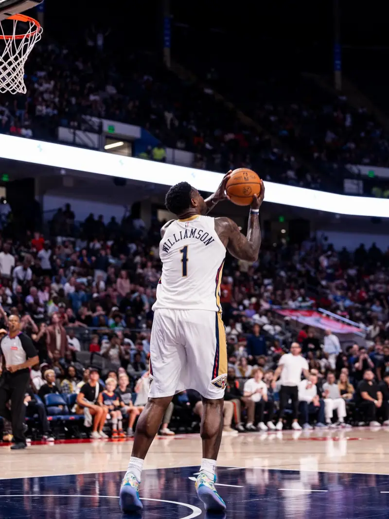 虎撲10月15日訊 鵜鶘官方更新Ins,曬出一組鵜鶘球員蔡恩-威廉森今日完成360°扣籃的賞鵜賽場照與球迷分享。