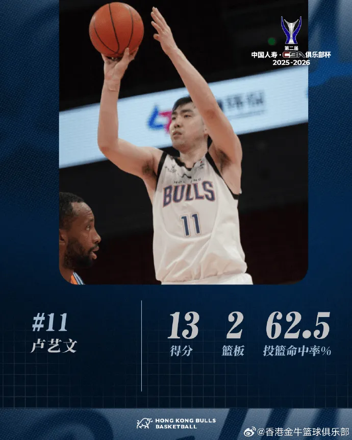 “香港金牛今日不敵上海久事,無(wú)緣晉級(jí)CBA俱樂(lè)部杯下一輪。面對(duì)衛(wèi)冕冠軍,球隊(duì)雖打得十分艱難,但始終未失拼勁,全場(chǎng)全力追趕比分。