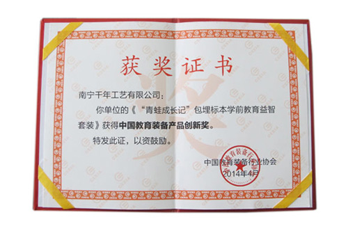由南寧千帆教學(xué)科技有限公司設(shè)計(jì),聯(lián)合南寧千年工藝有限公司共同研發(fā)的“千帆”品牌包埋標(biāo)本學(xué)前教育益智產(chǎn)品--《青蛙成長記》,榮獲中國教育裝備產(chǎn)品創(chuàng)新獎(jiǎng)。產(chǎn)品在設(shè)計(jì)上大膽創(chuàng)新,引入“與孩子共享自然”的教育理念,得到評(píng)審專家的一致認(rèn)可。