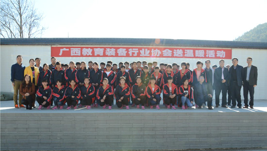 2017年1月9日,南寧千帆公司跟隨廣西教育裝備行業(yè)協(xié)會(huì)組織的“情系山區(qū),衣暖人心”活動(dòng)來(lái)到廣西隆林縣德峨中學(xué),為這里的孩子們送上冬衣、冬鞋。