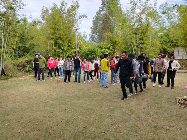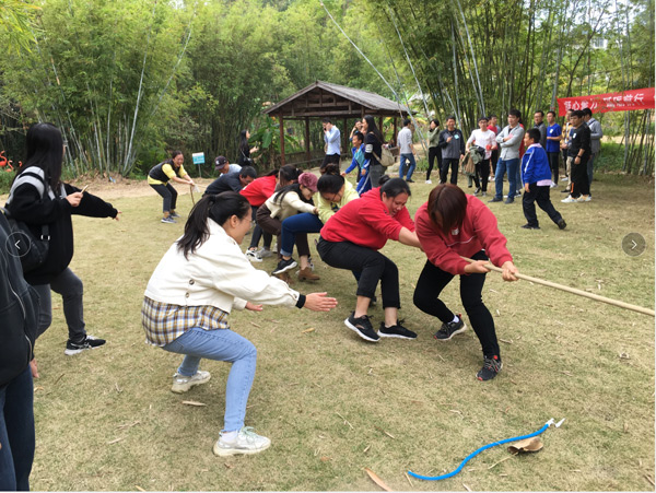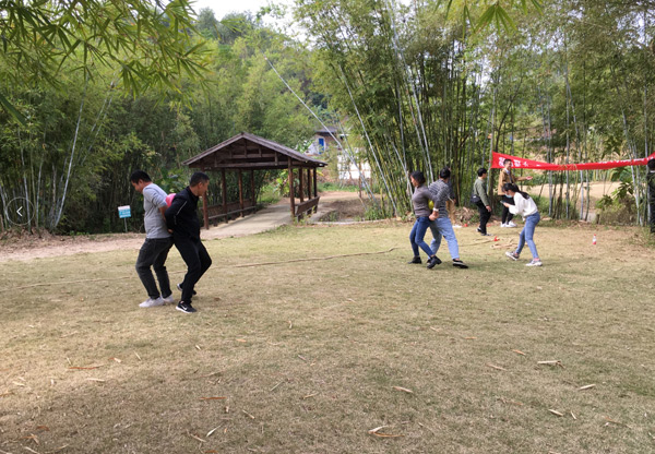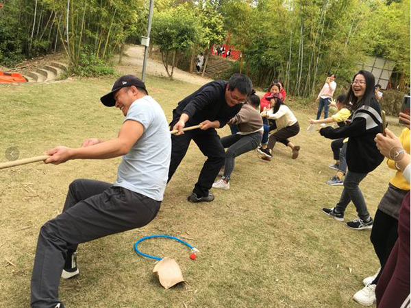 懷著激動的心情,經(jīng)過短暫的車程后,大家于10:00左右來到本次活動的目的地--長龍歡樂谷山莊。首先,分組進行了豐富多彩的體育運動,有六人單腳跳、運輸氣球、拔河等項目。在運動中,大家團結(jié)協(xié)作、歡聲笑語,平日里高強度的工作壓力被釋放一空。活動拉近了同事之間的距離,更增強了集體榮譽感。