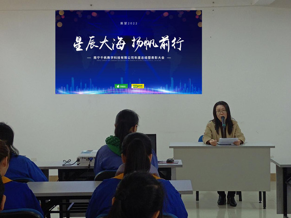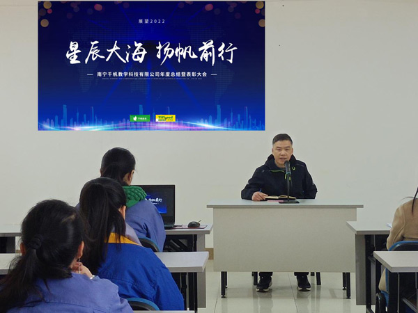 2022年1月28日,南寧千帆教學科技有限公司2021年度總結(jié)暨表彰大會隆重舉行,認真總結(jié)2021年度取得的各項成績及