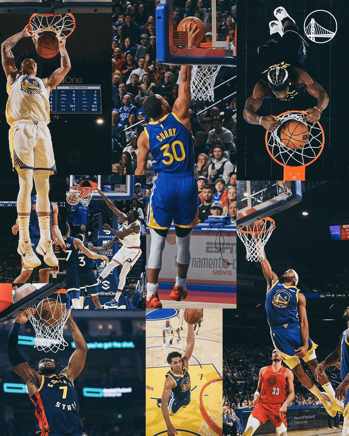海報(bào)中為多名勇士球員在比賽中的推曬扣籃時(shí)刻。