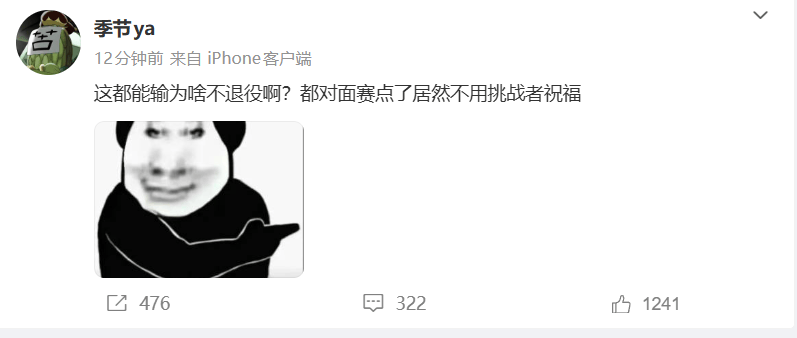 虎撲12月07日訊 季節(jié)發(fā)文:這都能輸為啥不退役啊?居然不用挑戰(zhàn)者祝福,原文如下: