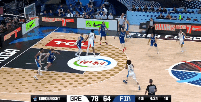 虎撲09月14日訊 男籃歐錦賽三四名決賽,希臘對(duì)陣芬蘭的多西比賽正在進(jìn)行中。