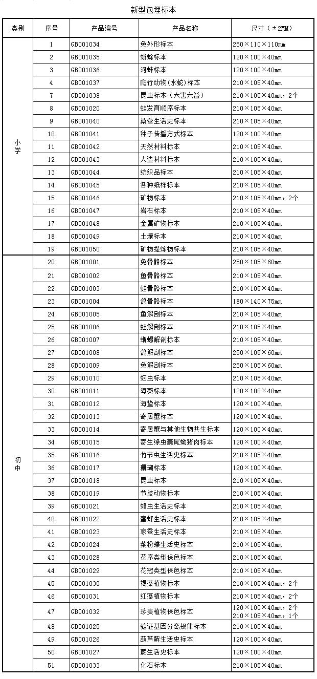 千帆中小學(xué)標準配備系列新型包埋標本涵蓋了國家中小學(xué)標準配備標本要求的所有標本品種,包括植物外形、植物生活史、植物結(jié)構(gòu)、動物外形、動物生活史、動物結(jié)構(gòu)、動物骨骼、動物解剖,礦物等標本產(chǎn)品。產(chǎn)品符合“JY0001-2003《教學(xué)儀器設(shè)備產(chǎn)品一般質(zhì)量要求》、JY143-82《動植物浸制通用技術(shù)條件》、JY 149-82 《昆蟲標本通用技術(shù)條件》”等國家相關(guān)行業(yè)標準,與教學(xué)大綱緊密配套,是中小學(xué)自然生物課堂的直觀教材和先進教學(xué)用具。